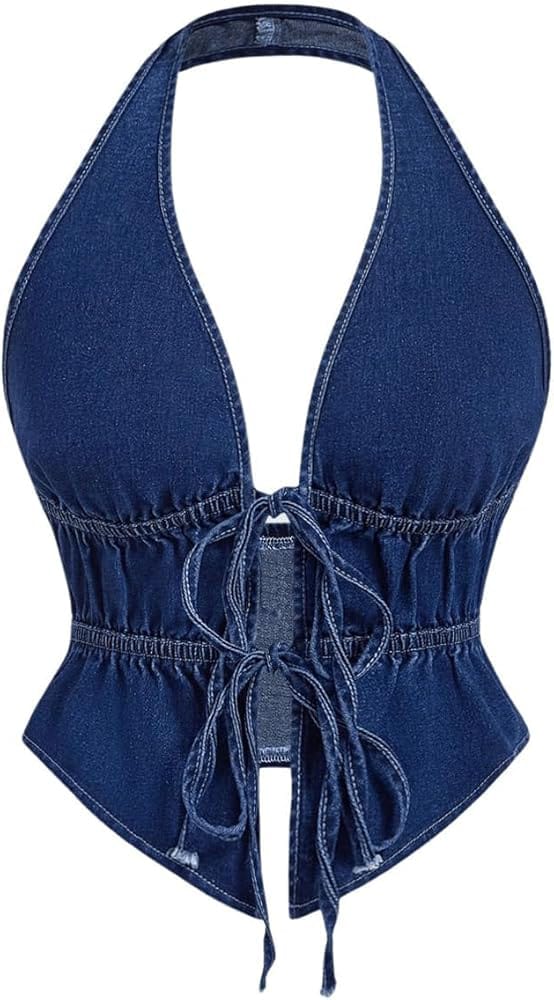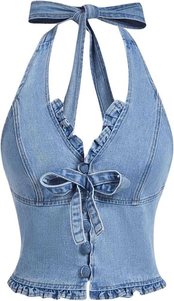 Statement Halter Denim Top That Turns a Basic Outfit Into a Look