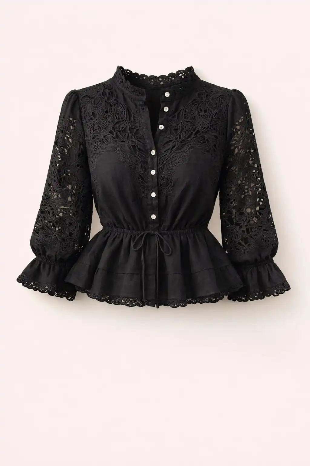 Chic Black Linen Blend Blouse for Effortless Evening Looks