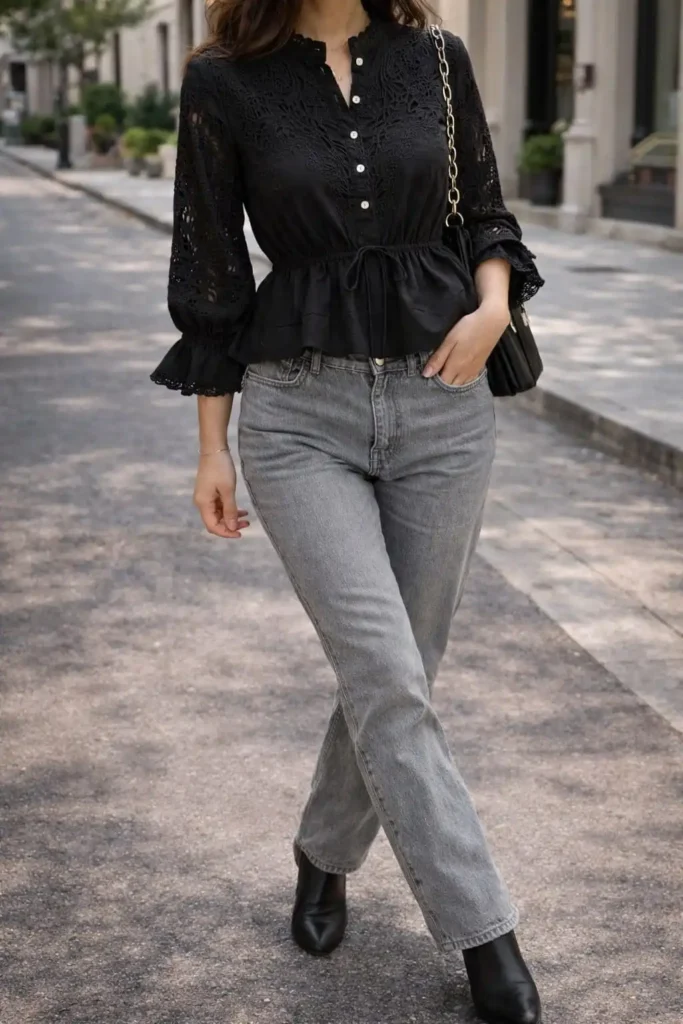 Whenever I want something slightly more elevated, I go for a black linen blend blouse. It feels simple, but it instantly makes the outfit look more refined and put-together.